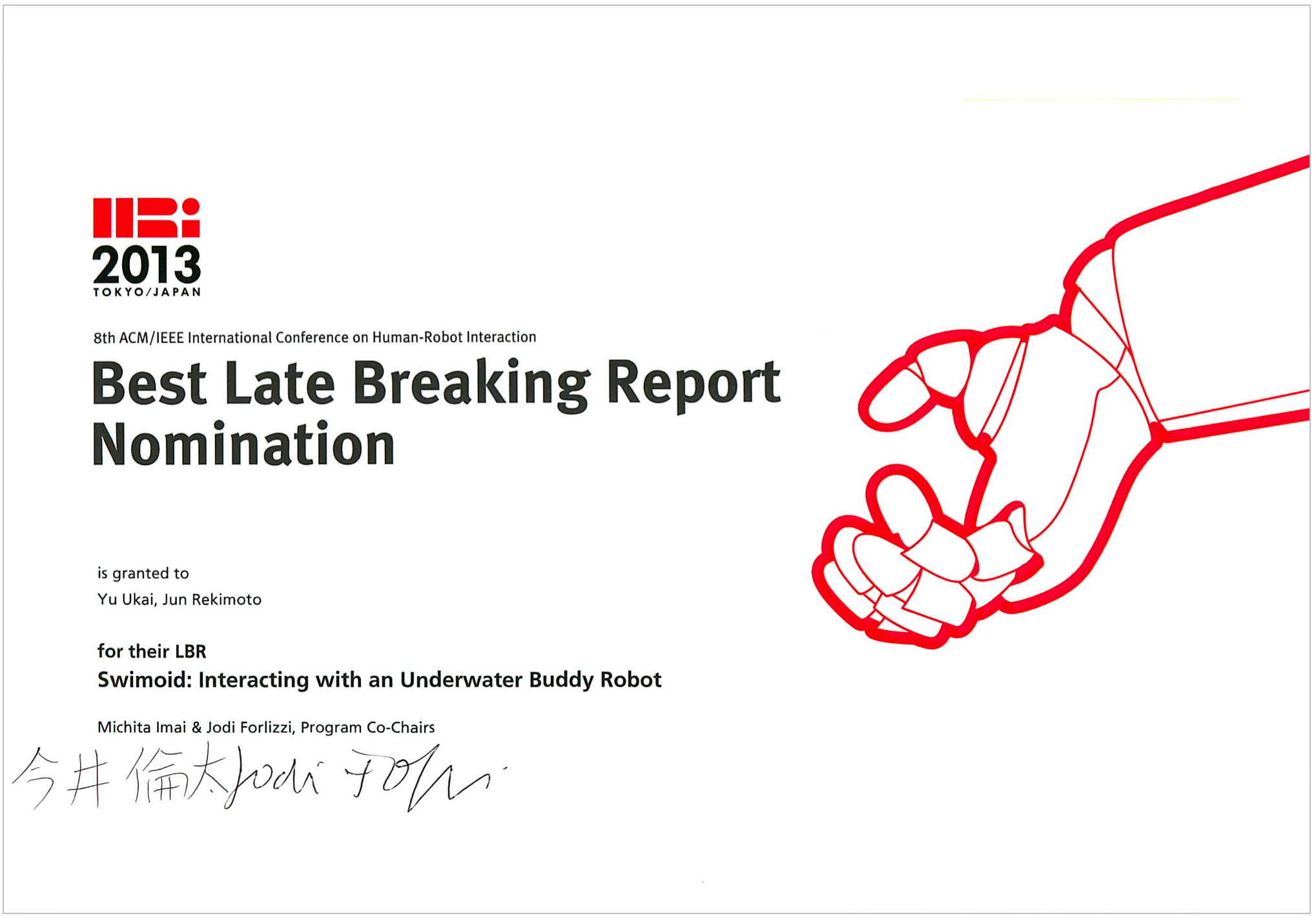 ACM/IEEE International Conference on Human-Robot InteractionHuman-Robot Interaction (HRI 2013), at Odaiba, Tokyo, March 3-6, 2013.
