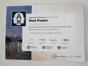 The following paper awards were received at the Augmented Humans 2024 International Conference held in Melbourne, Australia from April 4-6, 2024. This conference featured research on augmenting human capabilities through advanced technologies: