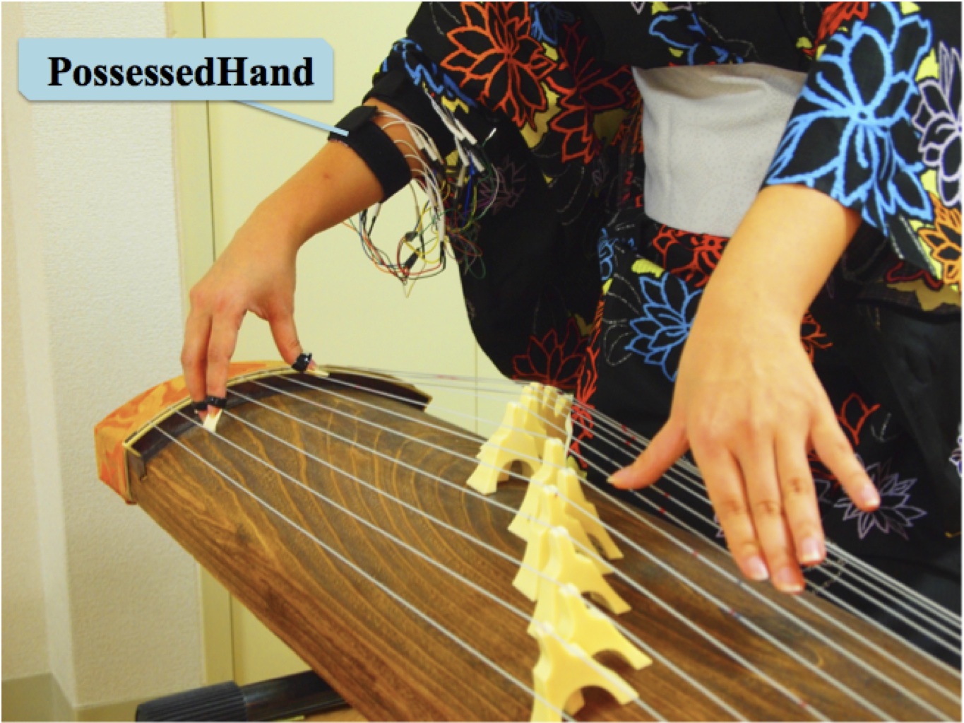 現在は、琴の演奏を支援するアプリケーションが提案されています。 PossessedHandが演奏時にどの指をどのタイミングで使うのかの情報を提示してくれます。 今後は、制御精度の向上はもとより、PossessedHandによる道案内システムや |