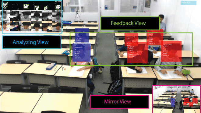 “Sync Class” helps teachers have access to a quantitative representation of how much students are in sync in a classroom. The system has a web camera placed in front of the classroom observing each student’s face. The system visualizes students’ engagement in real time and alternatively, the system can also be used to analyze each student’s attentiveness after class.