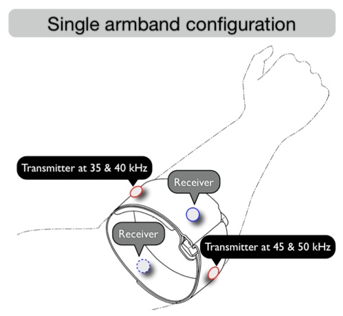Adiyan Mujibiya, Xiang Cao, Desney S. Tan, Dan Morris, Shwetak N. Patel, and Jun Rekimoto. 2013. The sound of touch: on-body touch and gesture sensing based on transdermal ultrasound propagation. In Proceedings of the 2013 ACM international conference on Interactive tabletops and surfaces (ITS ’13). ACM, New York, NY, USA, 189-198. DOI=10.1145/2512349.2512821 http://doi.acm.org/10.1145/2512349.2512821